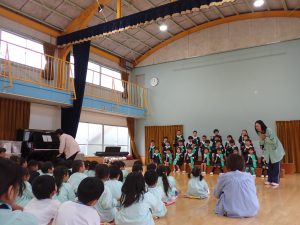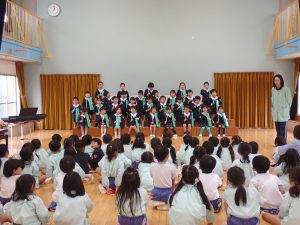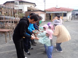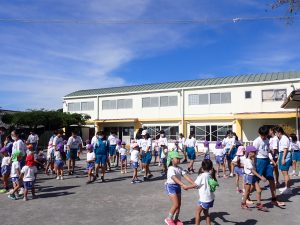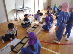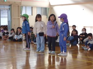 大淵第一小学校のお兄さんお姉さんが小学校で遊びの会を開いてくれました。来年1年生!安心して学校にいけるね。