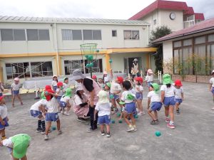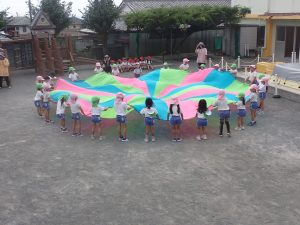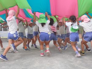 6月20日、パラバルーンを園長先生に教えてもらいました。年少の頃から憧れていたパラバルーン。今年は自分たちの番です。持ち方からいろいろな技まで教えてもらいました。運動会本番、素敵な演技、楽しみです。