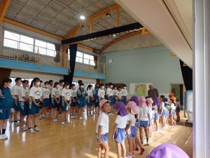 大淵中学校の3年生のお兄さんお姉さんが3日間(中学校のクラス毎)に遊びに来てくれました。