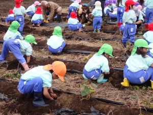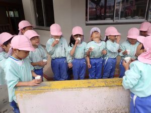 6月26日、大淵笹場で伊藤園さんが主催する植樹会が行われました。年長さんが体験をしてきました。
