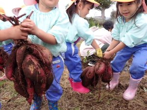 さつま芋ほり 農協の皆さんお手伝いのおばさんありがとう。豊作!豊作! いっぱいいっぱいお家にお見上げ出来ました。