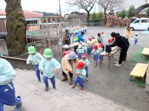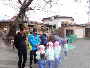 防災訓練【園児引き渡し・防災頭巾と防災リュック】