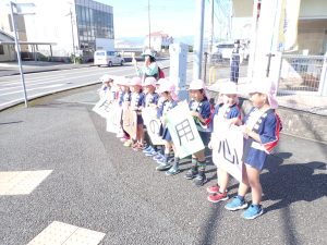幼年消防クラブ員!中野交差点で火災予防の広報活動に出かけました。富士市消防団第12分団ともコラボです!